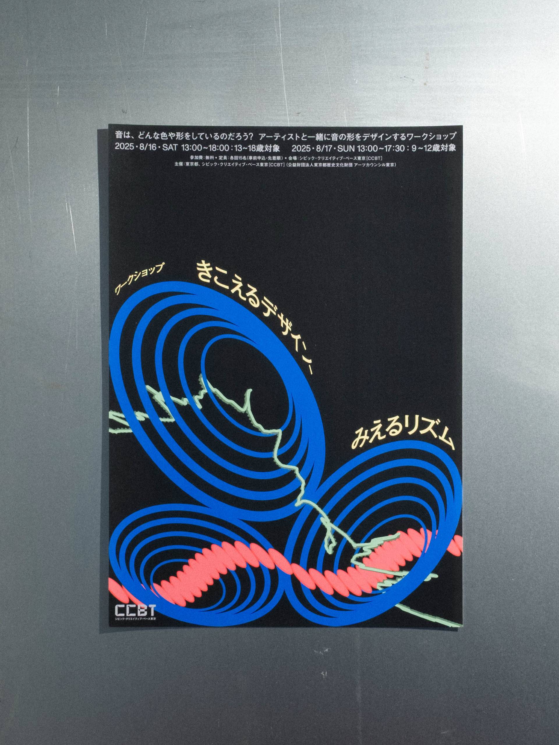 2025年8月16日、17日に開催された、音をデザインしてみることを目的としたワークショップ 「きこえるデザイン、みえるリズム」のメインビジュアルデザイン、モーションデザイン。「マル、サンカク、シカクだけを使って音の形を考えて動かしてみる。最後にはビジュアルドラムマシンに作ったモーションを入れることで、音とデザインを演奏してみる。」というワークショップという内容に基づいて、同じ制約のもとデザインとモーションを制作した。ワークショップ本編のプロラムディレクションも担当しています。