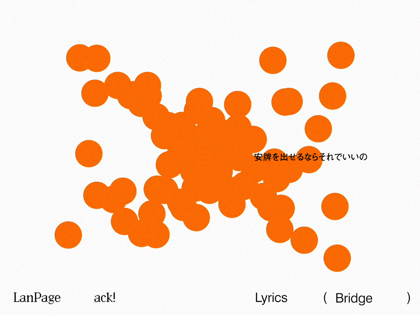 日本のハイパーポップユニット LanPageの結成から最初のリリースとなるシングル、「ack!」のMV、ジャケットのデザイン。諸音要素の視覚表現に焦点を当てたプリミティブな図形構成をテーマにしています。また、全編を通してopenFrameworksを用いたプログラミングによる映像制作を行なっており、ライブにおいてもMIDI信号を通してリアルタイムな図形の反応が可能になっています。